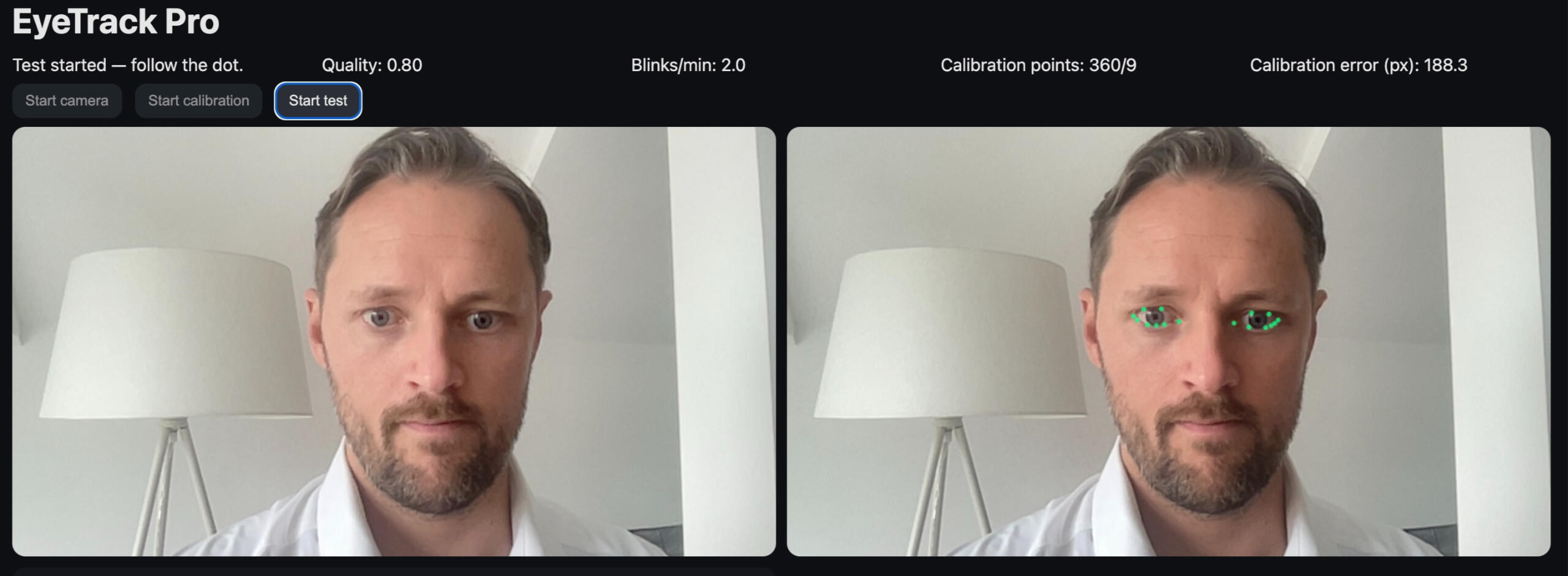 EyeTrack Pro is our advanced eye-tracking solution for healthcare, safety, and human performance. By analyzing eye movements in real time, it provides insights into attention, focus, and neurological health.Capabilities: